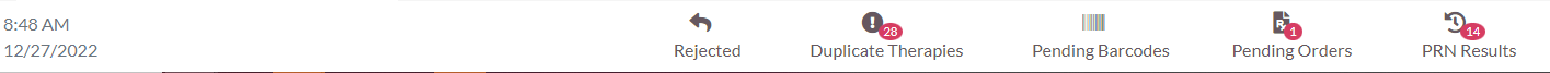 Note: If the community has chosen to use Order Clarifications instead of Rejected, the tab will display Clarifications.- Duplicate Therapies displays the number of potential duplicate orders ACCUflo has detected. Refer to the Possible Duplicate Therapies section for additional information.