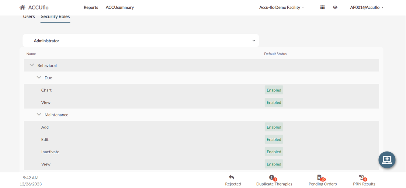 Users with the required permissions can view the permissions assigned to each role. Refer to Accuflo 6.0 APPENDIX A – SECURITY ROLES for user permissions for each role.