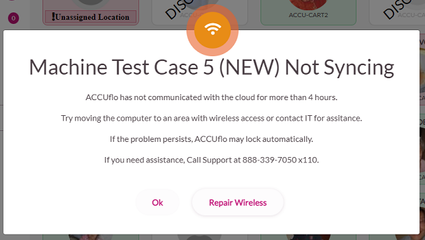Note: Local installed versions of ACCUflo have the ability to work without an internet connection as a fail-safe; however, these ACCUflo devices should be connected to the network as often as possible.Offline Notification
