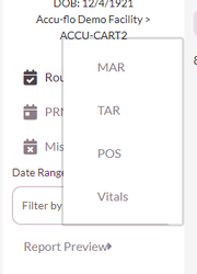 The Report Preview Tab is used for quick access to the current MAR, TAR, POS, Behavior Monitoring, Vitals and More reports.