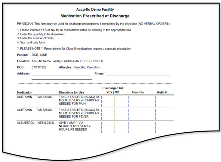 In this article we will review the Discharged Report - for Physician (Medications Prescribed at Discharge), which lists orders which are active when the report is printed. Form can be printed and filled out by physician for easy reordering of current meds that need to be continued at home. Indicates if drug is controlled and needs a separate script.