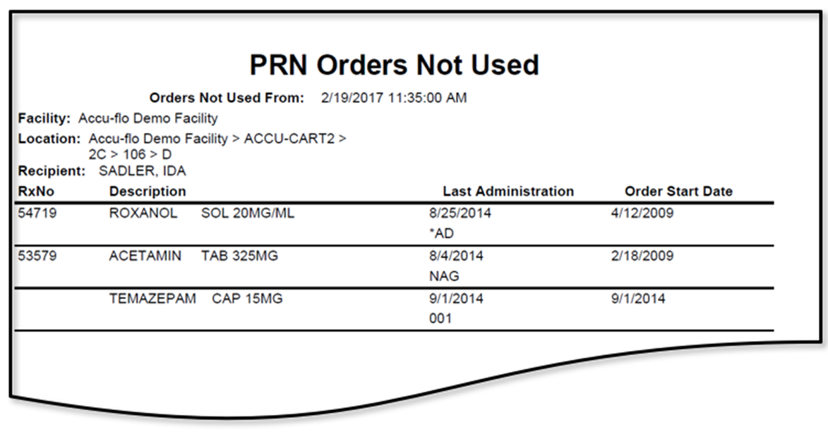 In this article we will review the PRNs Not Used Since (PRN Orders Not Used) Report, which lists active PRN orders not administered since the Date / Time specified.