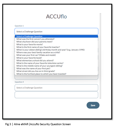 The first time a user logs into the system, they will also be required to setup four security questions as shown in Fig. 3. These security questions, when answered correctly, will allow a user to unlock their accounts, or request a password reset code from a facility administrator.