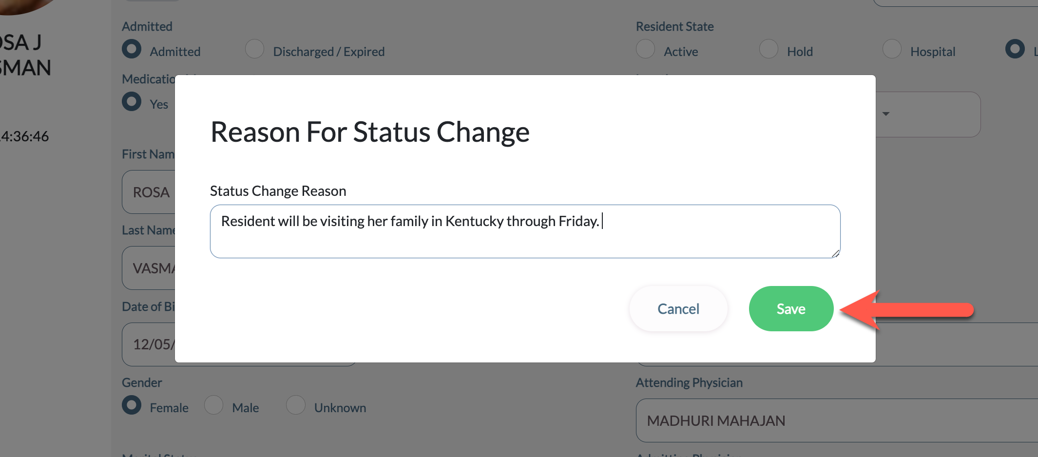 Step 3: Next, provide a reason for the Status Change and then select Save.