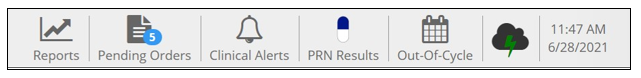 - The med cart computer is plugged in and connected to the network (green lightning bolt as seen below).