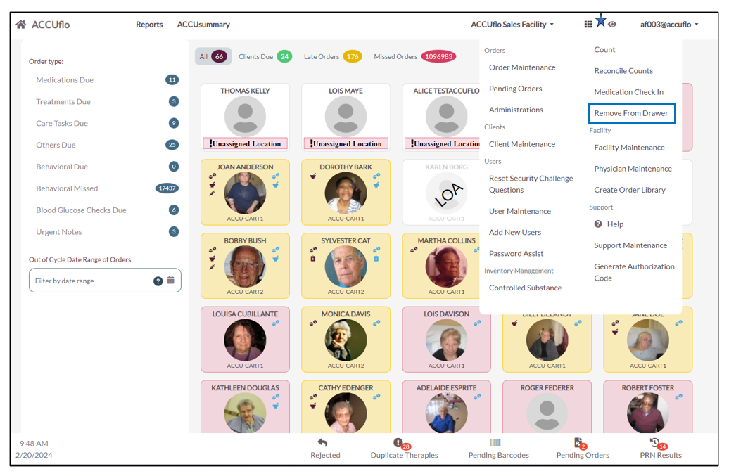 Note: If a med is not removed from the drawer, the count will be off during the next Controlled Substance Count. The Remove from Drawer Report will list all items removed from the inventory. Use this to confirm quantity on hand.