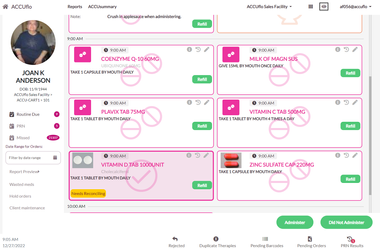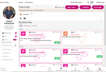 Instead of using the paper MAR and TAR, ACCUflo will be used to administer and record the results of medications and treatments. Once users are logged into ACCUflo, they can begin the medication pass. The residents assigned to the Selected Group will display onscreen.