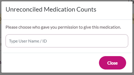 When the Controlled Substance Count Configuration Allow Charting while in Reconcile is active, users may continue to document controlled substances with a known count discrepancy after receiving approval from the appropriate staff member based on the community’s policies and procedures. If this configuration is inactive, users will be prohibited from administering any orders that are out of compliance.
