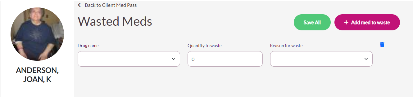 Step 6: When all medications have been wasted, select Save All to finalize the action.