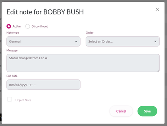 Step 8: Select the Urgent Note checkbox to change whether the note is urgent.