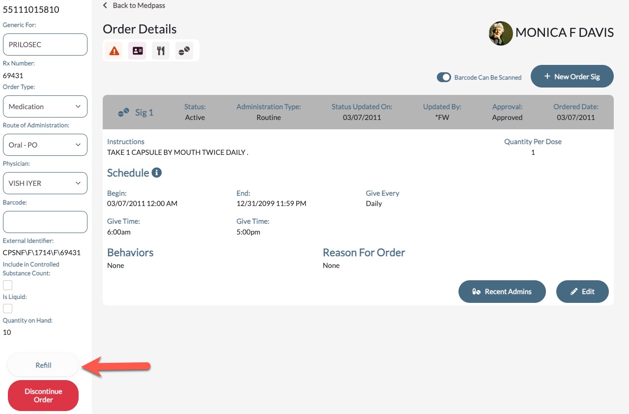 In this article, we'll review refill requests. Refills can be requested through Aline eMAR ( ACCUflo) by using the Refill Icon displaying on the order tile, on the Order Detail screen, or on the Refills Page.