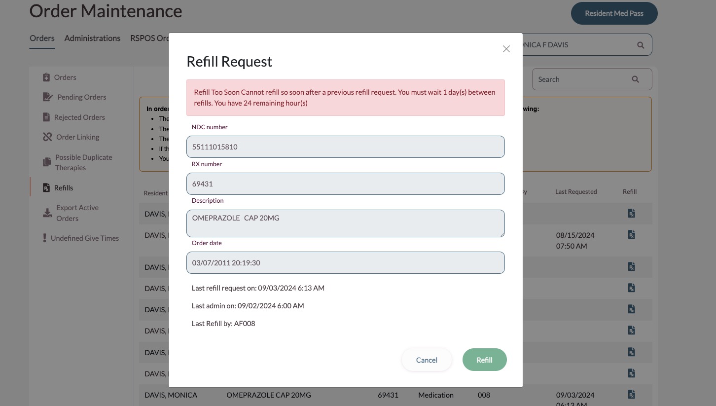 Refill Request Too Soon