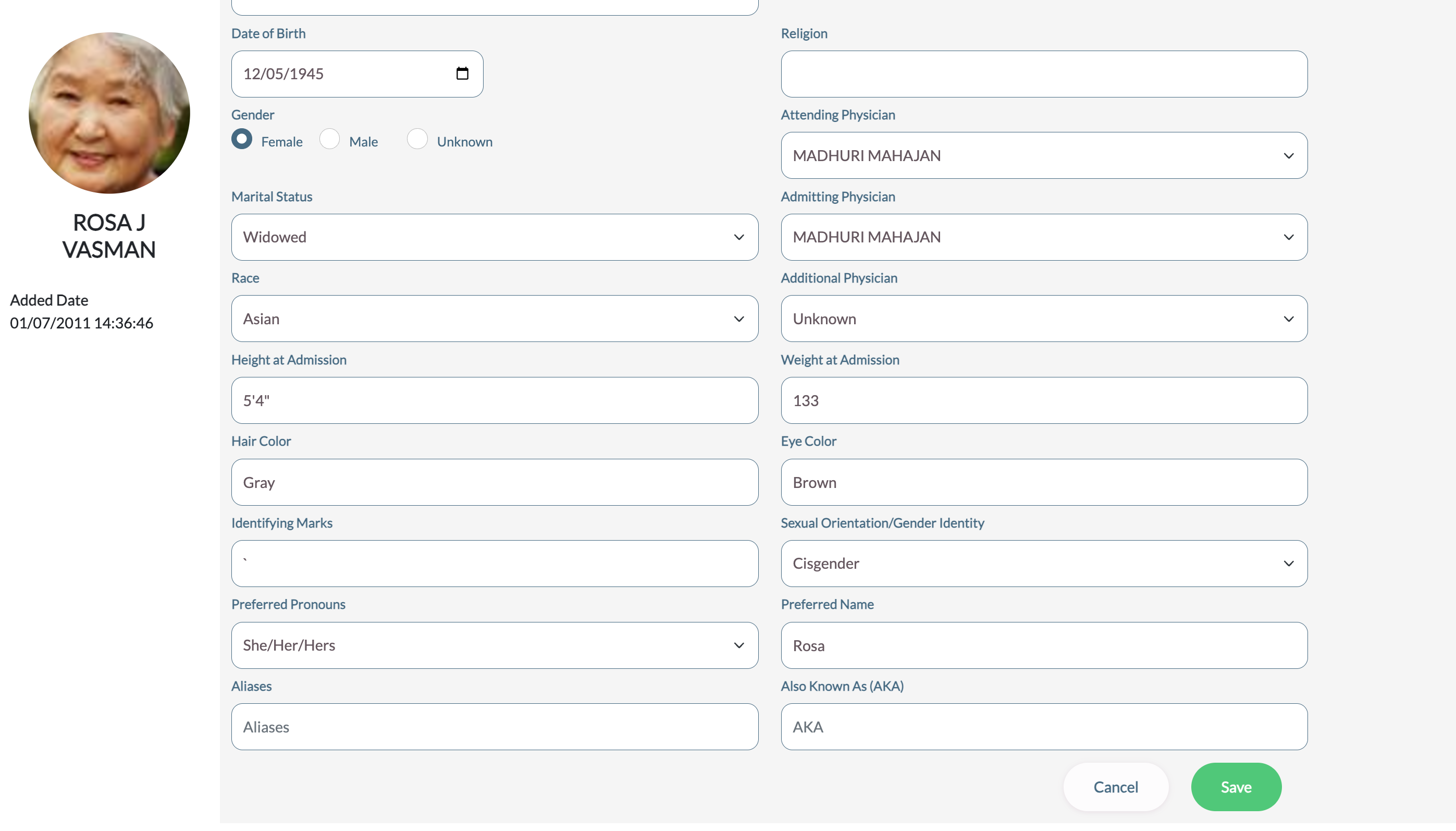 • Admitting Physician: Select the drop-down to add or change the admitting physician.