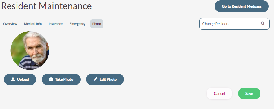 Note: A resident's photo cannot be removed, it can only be replaced.