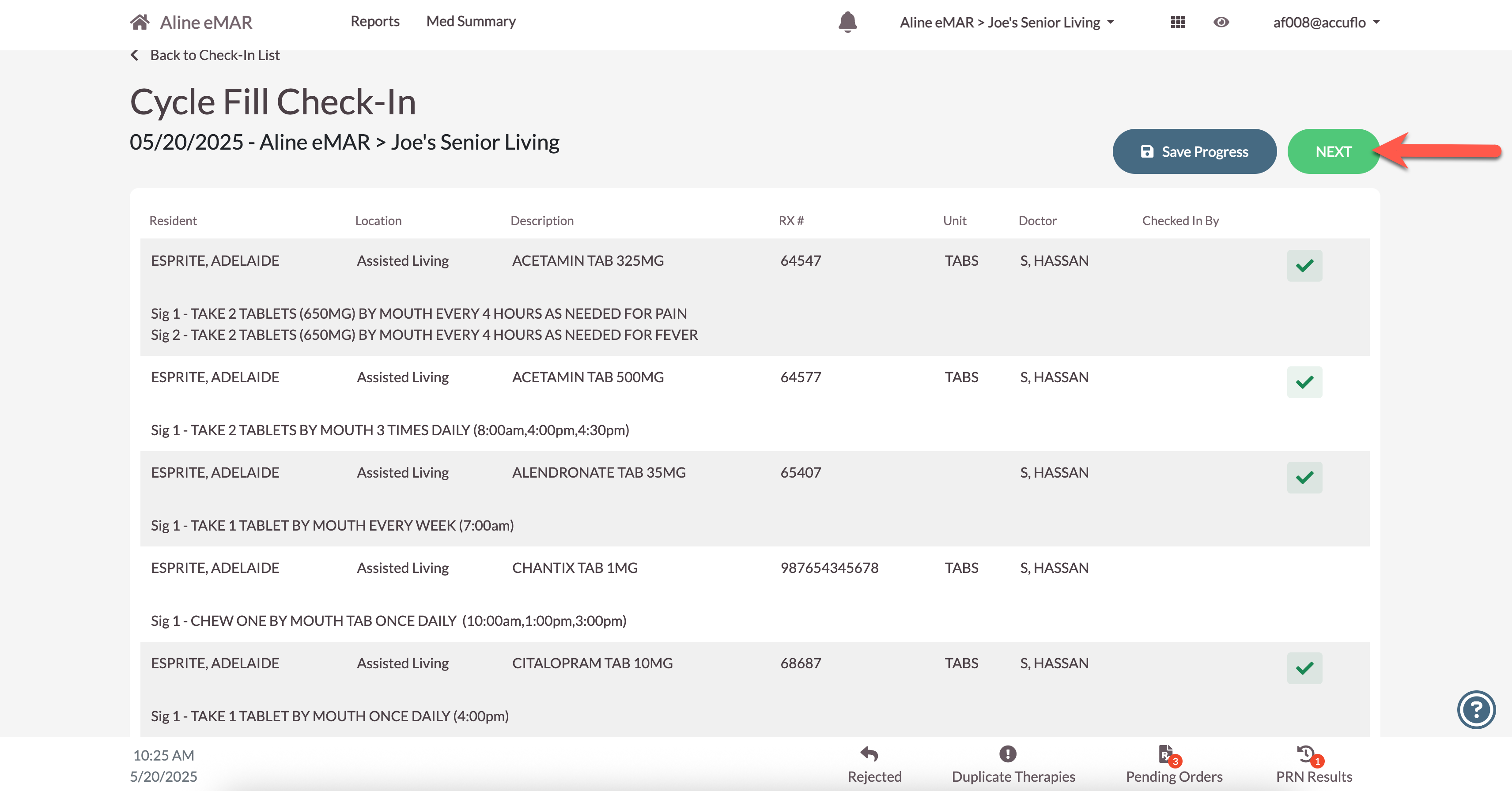 In this article, we'll detail the use of Aline eMAR's Cycle Fill Check In tool.
